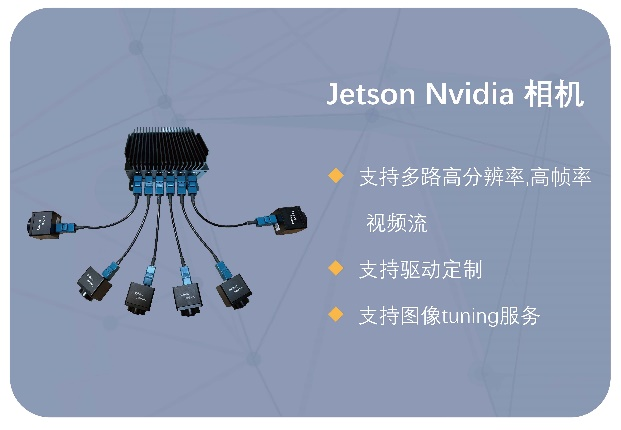 Jetson Nvidia平臺可以和多種傳感器搭載,例如IMX390、AR0820等。嘉駿科技提供驅動定制、圖像tuning等服務。Jetson Nvidia系列一般都支持多路高分辨率和高幀率視頻流。
