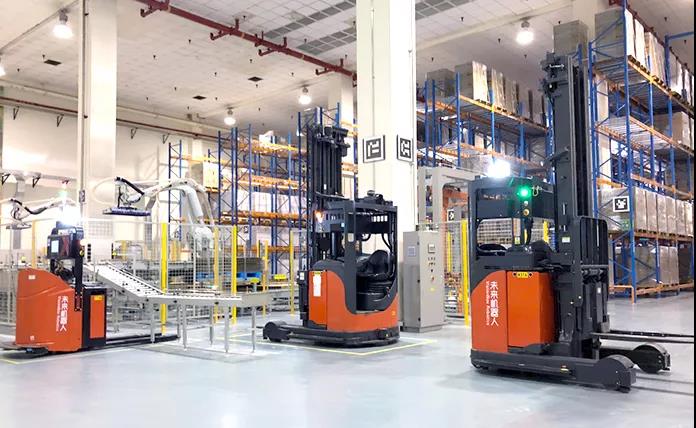 在物流和制造業倉儲中,復雜任務處理、作業效率、投資回報期都是用戶在布局無人倉儲時關注的關鍵指標。區別于傳統基于激光傳感器的類Kiva倉儲機器人,未來機器人圍繞視覺傳感器構建了一整套高柔性、易用性強、通用性高的無人駕駛模塊,為裝卸貨、存取、分撥等環節提供智能、復用性強、性價比高的無人搬運解決方案,幫助客戶縮減在無人倉儲布局的時間,降低前期投入成本、二次開發以及后期運維成本。